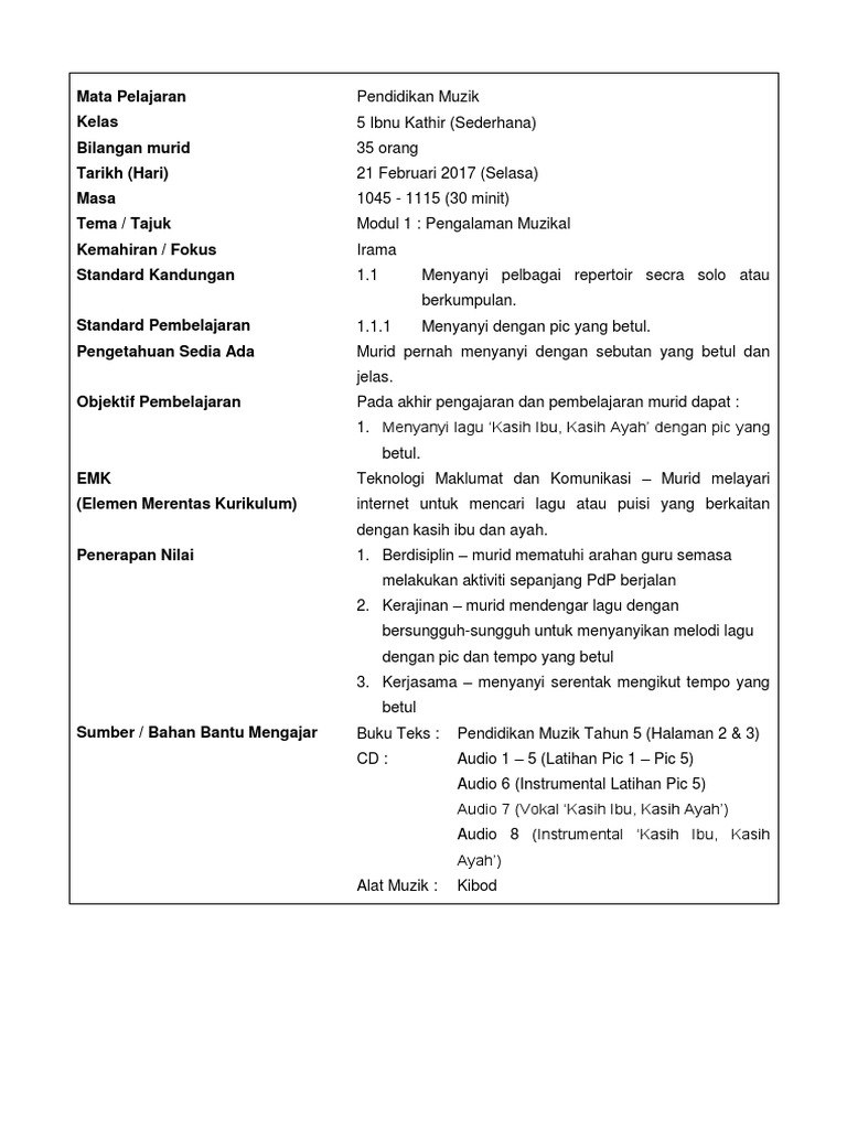 Rph kami lengkap mengikut standard pembelajaran, tajuk dan tema di dalam buku teks kssm, kbsm dan mpei. Made with no regrets, whatsoever. Rancangan pengajaran harian muzik tahun 5. Saya telah design rancangan pengajaran harian bagi mata pelajaran kssr dunia muzik dalam bentuk microsoft excel. Berikut disediakan rph dunia muzik tahun 2. Rph pendidikan muzik tahun 5 rph pak 21 sekolah rendah. Hubungi telegram di bawah untuk dapatkan rph ini. Rph pendidikan muzik tahun 5 2021. Rpt muzik tahun 5 2021 : Berikut merupakan koleksi rph pelbagai subjek tahun 2 yang telah dikumpulkan. Rph dunia muzik tahun 2p.doc. Waspada selalu pendidikan muzik tahun 5 2021. Kursus ju muzik tahun 5 hotel putra.