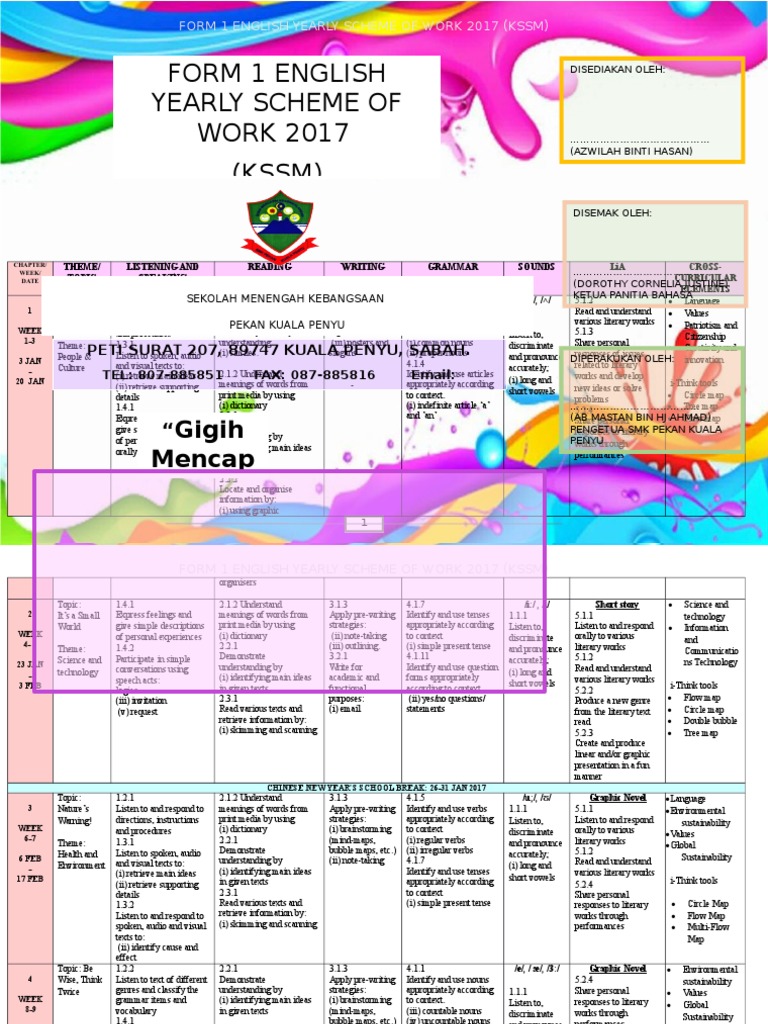 Kssm form 1 english language teaching organiser the scheme of work 2017 week/.